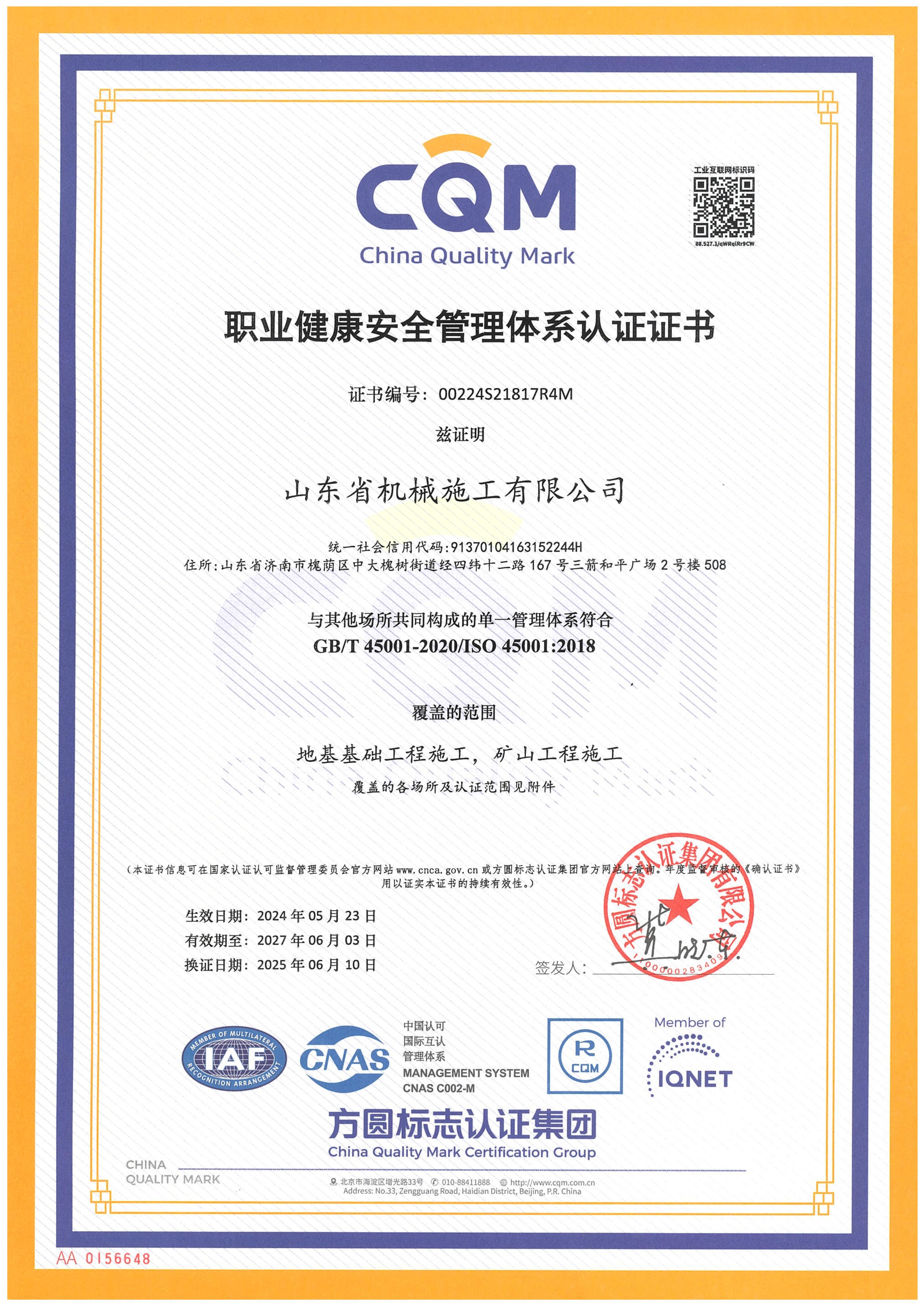 山東省機(jī)械施工有限公司資質(zhì)證書(shū)