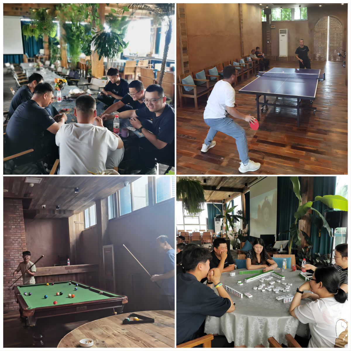到達目的地后,大家三五結(jié)伴的自由活動,有打臺球、乒乓球等球類運動的,也有打撲克、麻將等娛樂活動的,處處洋溢著歡聲笑語。