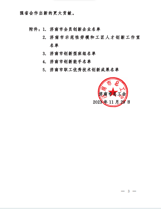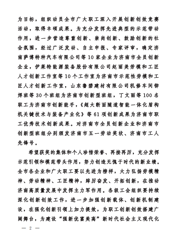 喜報(bào)|山東省機(jī)械施工有限公司研發(fā)的新技術(shù)被評選為濟(jì)南市職工優(yōu)秀技術(shù)創(chuàng)新成果二等獎(jiǎng)